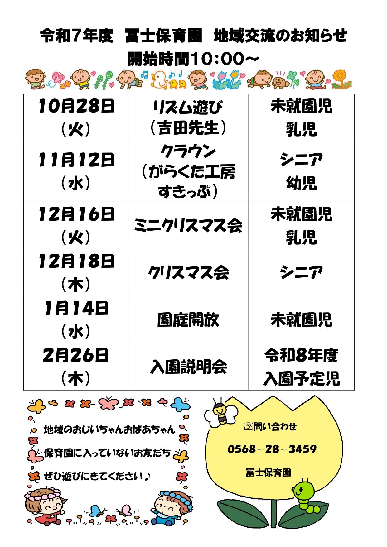 冨士保育園地域交流のお知らせ☆