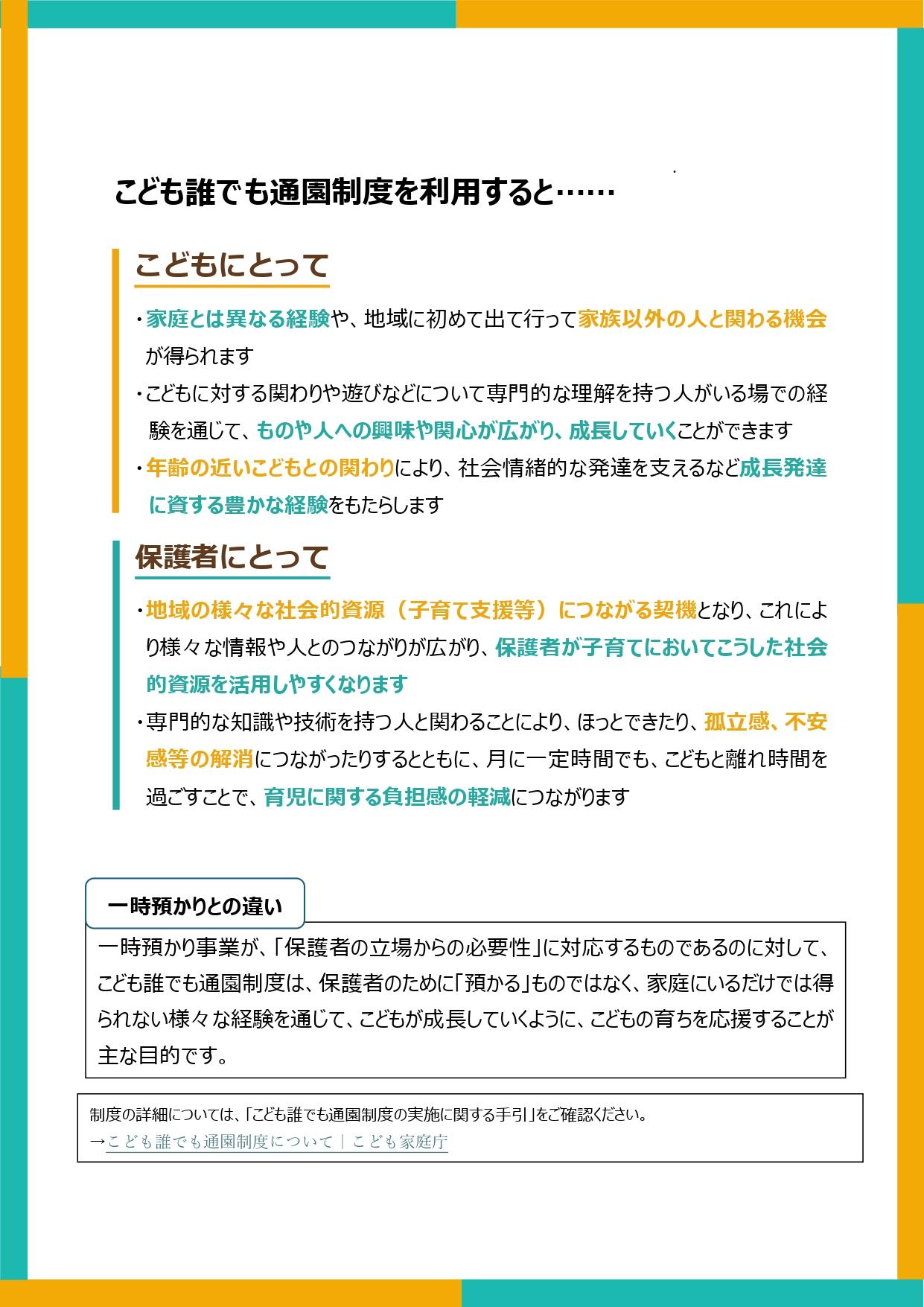 来年4月1日から、0歳6か月から2歳の子が保育園等を利用できる制度として、「こども誰でも通園制度」が始まります。
